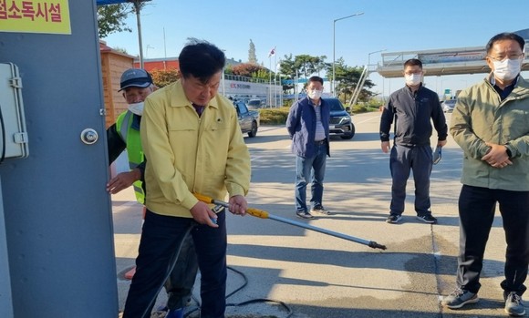 [포토] 최재구 예산군수, 가축 전염병 방역초소 방문해 방역시설 점검