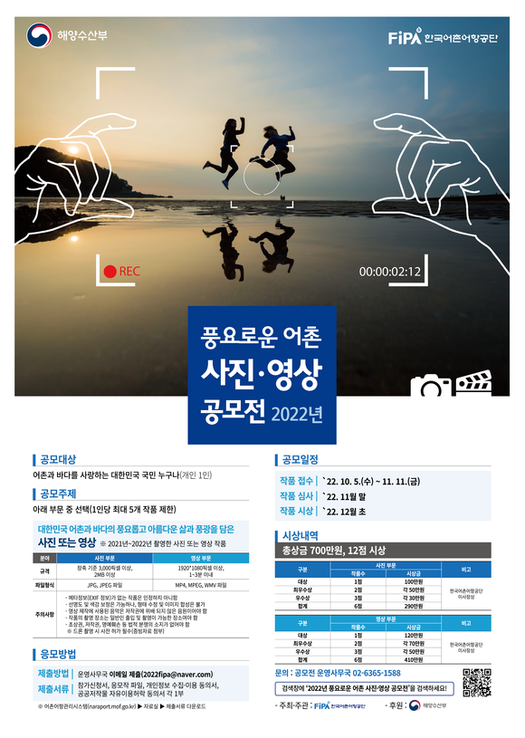 [쾌적한 한국어촌어항공단] '2022 풍요로운 어촌 사진·영상 공모전' 개최