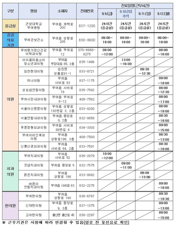 [백제도시 부여] 부여군, 추석 연휴기간 응급진료체계 구축