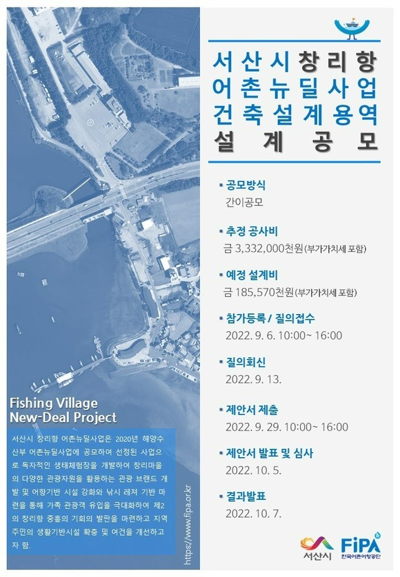 [쾌적한 한국어촌어항공단] 서산시, 창리항 어촌뉴딜사업 건축설계 공모 본격화