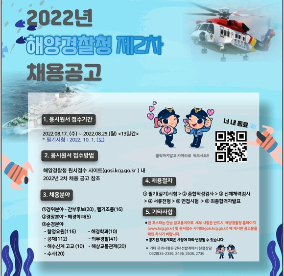 [바다수호 해양경찰청] 2022년 제2차 경찰공무원 370명 채용