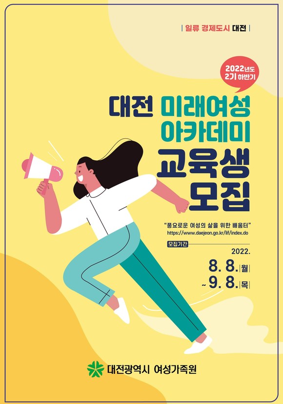 [변화와 도약 대전] 대전시, 올 하반기 대전 미래여성아카데미 교육생 모집