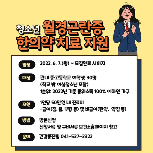 [더 큰 아산] 아산시, 청소년 월경곤란증 한의약 치료지원