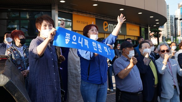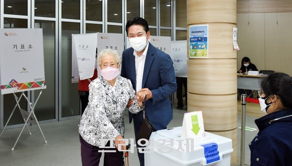 [포토] 장동혁 보령·서천 국회의원 후보, 고향 웅천에서 어머니와 사전투표 후 선거유세