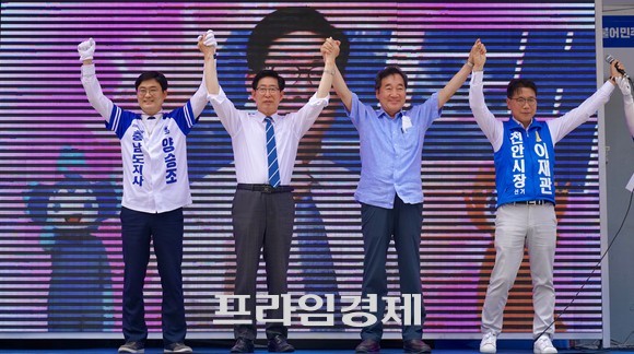 [포토] 이낙연 전 총리 천안 합동유세 "천안의 아들 양승조 지켜달라" 호소