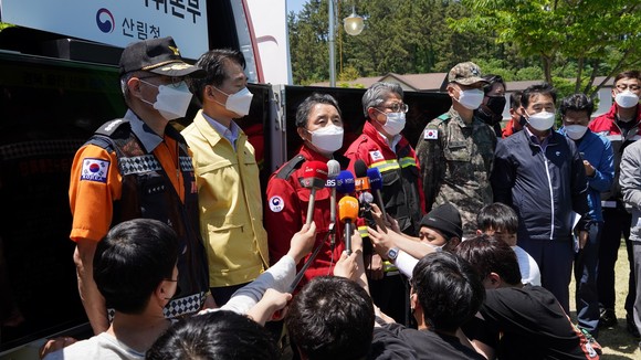[포토] 남성현 산림청장, 경북 울진군 근남면 산불 주불 진화 완료 선언