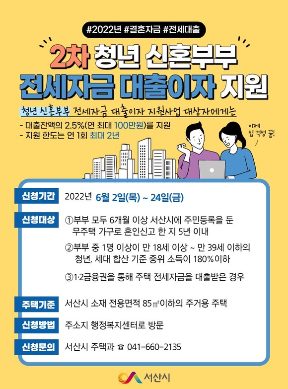 [소통의 민주 서산] 서산시, 신혼부부 주택 전세자금 대출이자 지원