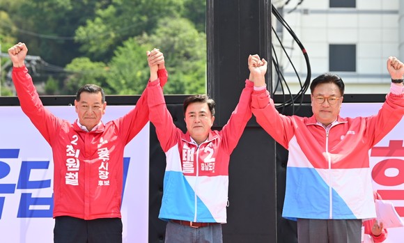 [포토] 김태흠 국민의힘 충남도지사 후보, 공주·홍성에서 열띤 합동유세
