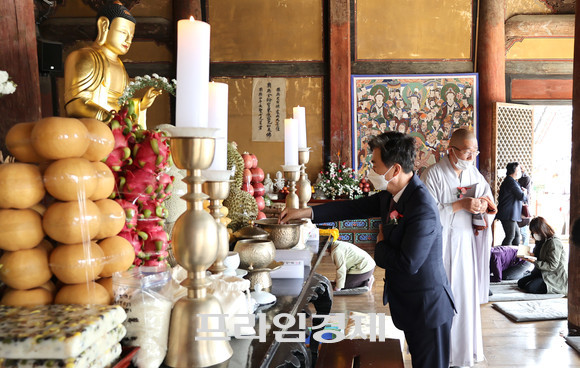 [포토] 김태흠 충남도지사 후보, 불기 2566년 부처님 오신 날 봉축 행사 참석