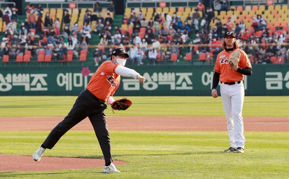 [포토] 양승조 충남도지사, 프로야구 한화-LG전 시구