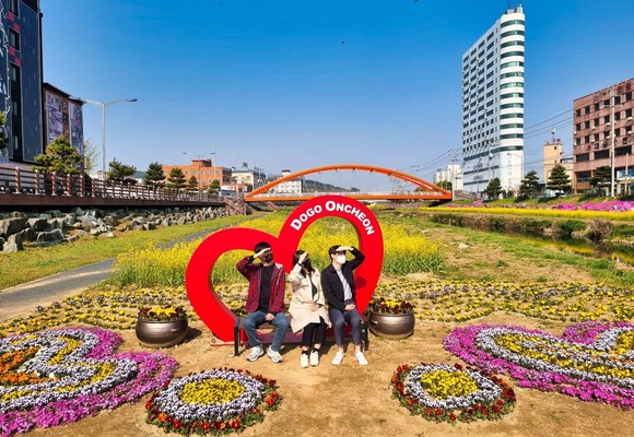 [포토] 향긋한 꽃내음이 물씬…도고천변의 화려한 변신
