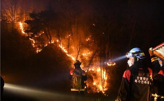 경남 합천군 율곡리 산불 확산...'산불 3단계' 및 국가위기경보 '심각' 발령