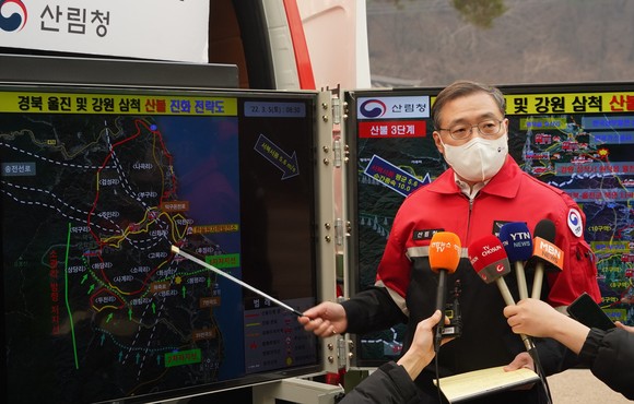 [포토] 최병암 산림청장, 경북 울진 및 강원 삼척 주불 진화 완료 선언