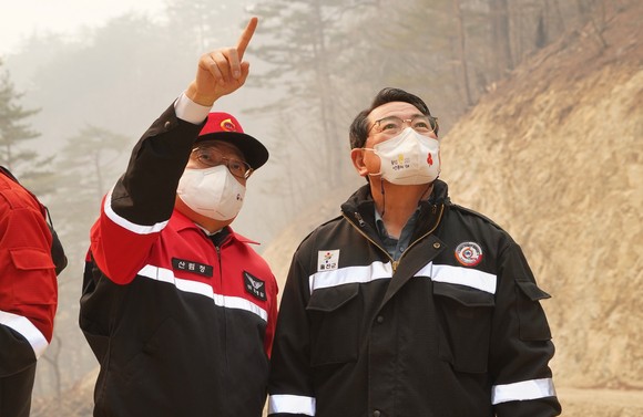 [포토] 최병암 산림청장, 이철우 경북도지사와 울진·삼척 산불 상황 파악