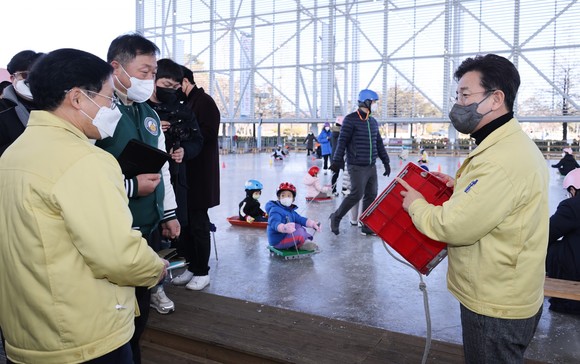 [변화와 도약 대전] 허태정 대전시장, 오미크론 확산에 엑스포야외스케이트장 방역상황 점검