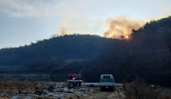 산림청, 경북 군위군 부계면 산불 발생...산불진화헬기 2대 및 산불진화인력 긴급 투입