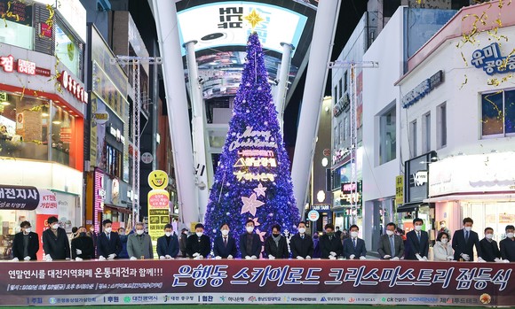 [포토] 허태정 대전시장, 스카이로드 크리스마스트리 점등 축하