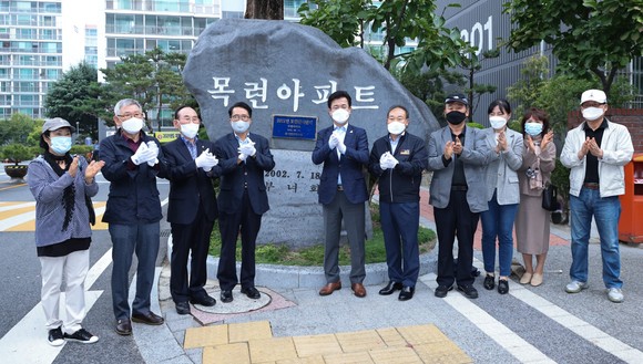[포토] 허태정 대전시장, 2021년 공동주택 모범관리단지 동판 제막식 개최
