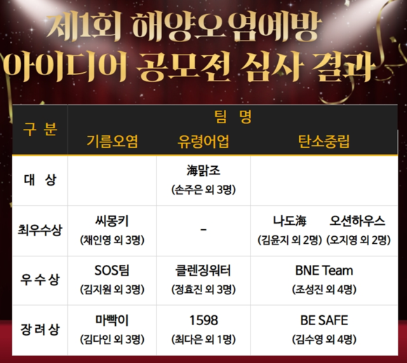 [브리핑 해양경찰청] 제1회 해양오염예방 아이디어 공모전에서 경북대학교 '海맑조' 팀 대상…