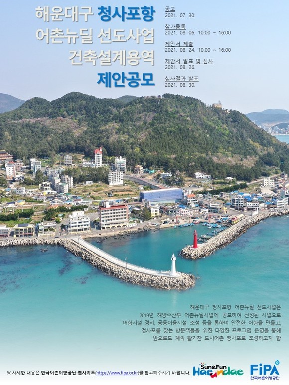 한국어촌어항공단-해운대구, 청사포항 어촌뉴딜사업 건축설계 제안 공모 시작