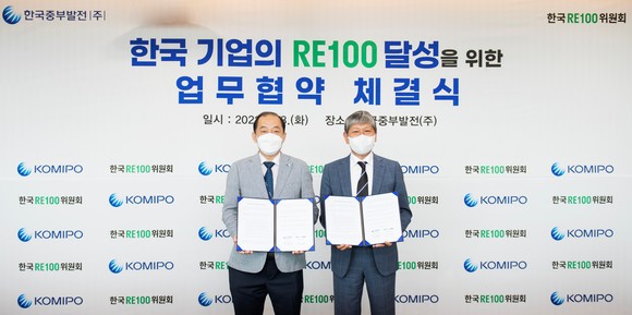 [브리핑 중부발전] 중부발전·한국RE100위원회, 한국 기업의 RE100 달성 위한 업무협약
