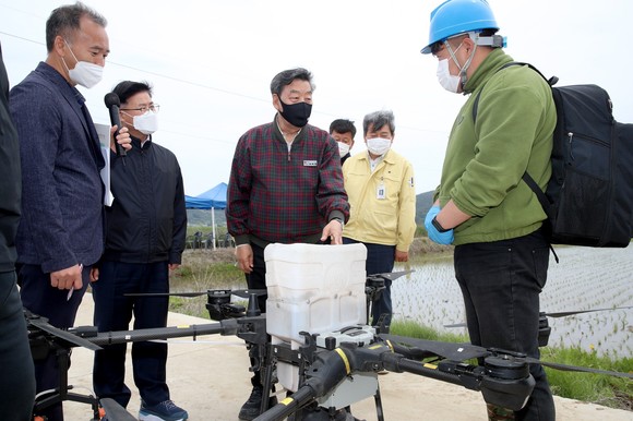 아산시, 스마트 벼 드론직파 파종 연시회 개최