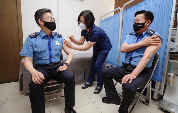 김홍희 해양경찰청장-이국종 해양경찰 홍보대사, 코로나19 백신 접종