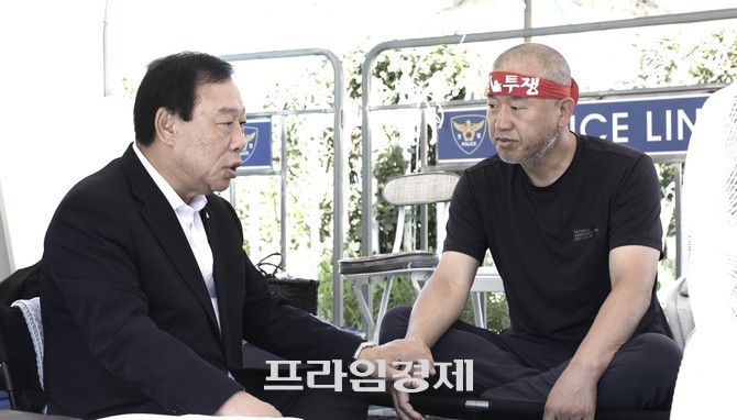 최민호 세종시장, 국회 앞 단식 중인 윤병철 해수부 노조위원장 찾아 위로