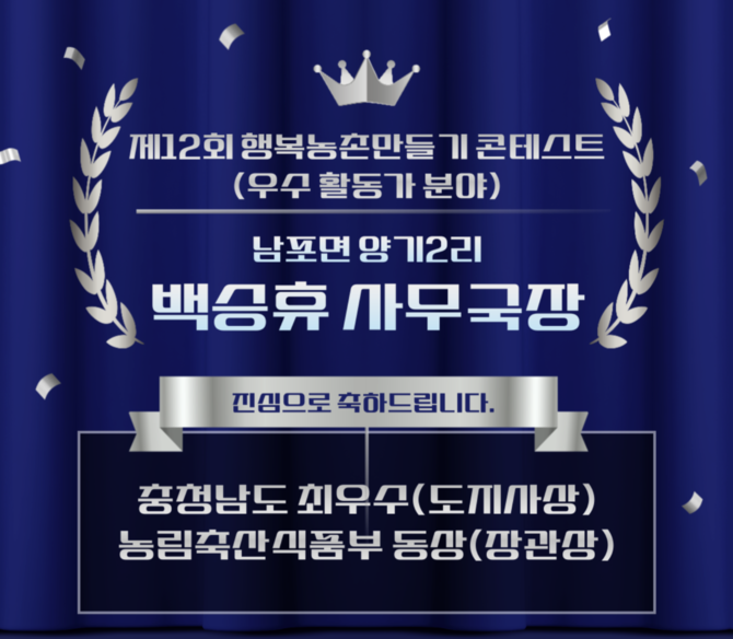 "마을이 삶이고 무대" 보령 양기2리 백승휴 사무국장, 행복농촌만들기 콘테스트 동상 수상