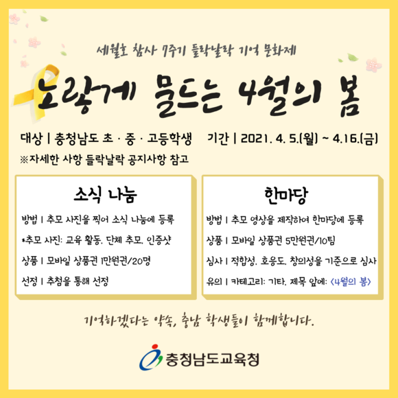 충남교육청, 세월호 참사 7주기 온라인 기억 문화제 개최