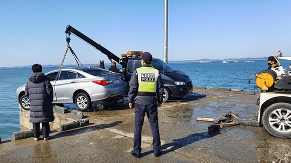 보령해경 "홍성 궁리항에서 대조기 밀물에 차량 침수사고 발생"