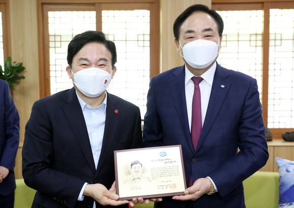 임준택 수협회장, 원희룡 제주도지사에 감사패 전달