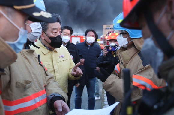 오인환 충남도의회 복환위원장, 논산 전자부품공장 폭발화재 현장 방문