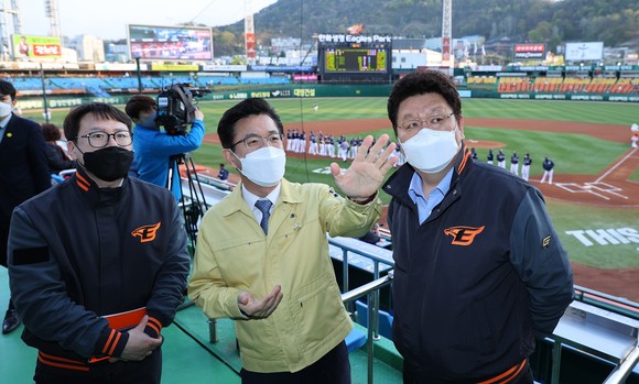 허태정 대전시장, 한화이글스 홈 개막전 방역관리 점검