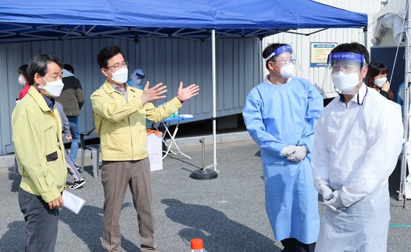 허태정 대전시장, 주말 산불예방과 코로나19 방역 현장 근무자 격려