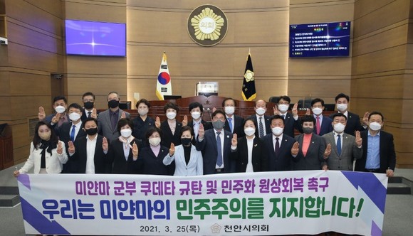 천안시의회 '미얀마 군부 쿠데타 규탄 및 민주화 원상회복 촉구 결의문' 채택