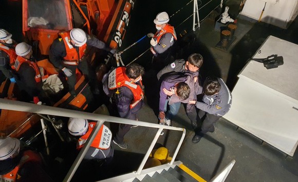 보령해경 '대조기' 갯바위에 고립된 가족 3명 긴급구조