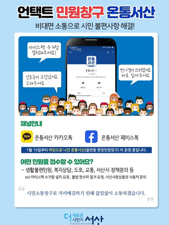 서산시 '온통서산' 비대면 민원창구 시민들 참여 큰 호응