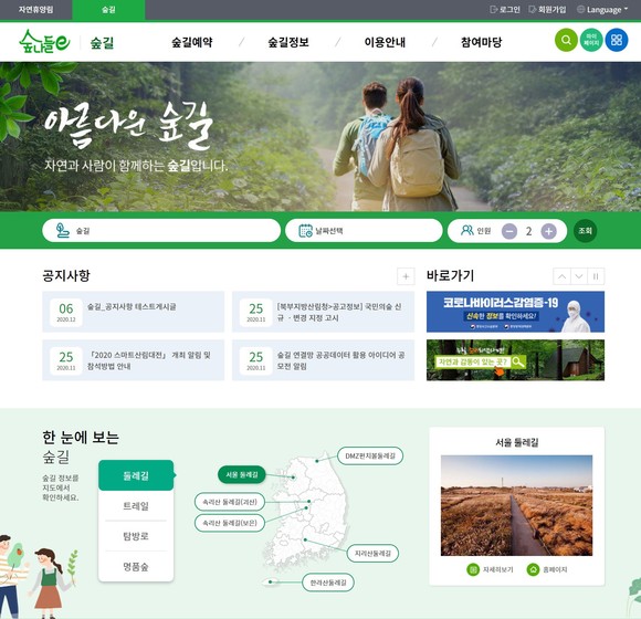 산림청 '숲나들이(e)' 서비스로 숲길, 산림 레포츠 예약 한번에
