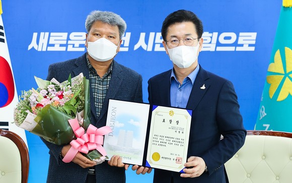 허태정 대전시장, 화재진압 의인 이명희씨 부부 표창장 수여