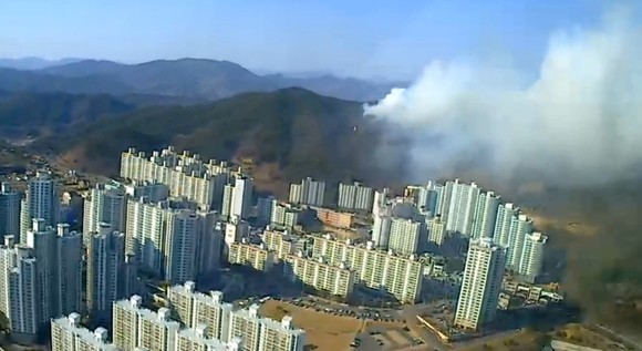 산림청, 전남 광양시 마동 가야산 산불 진화율 총력 진화 중