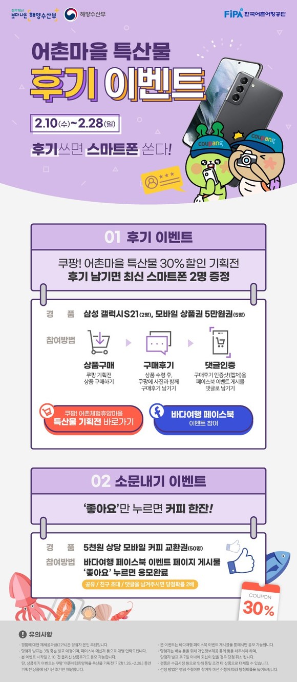 한국어촌어항공단, 어촌마을 특산물 구매후기 이벤트 실시