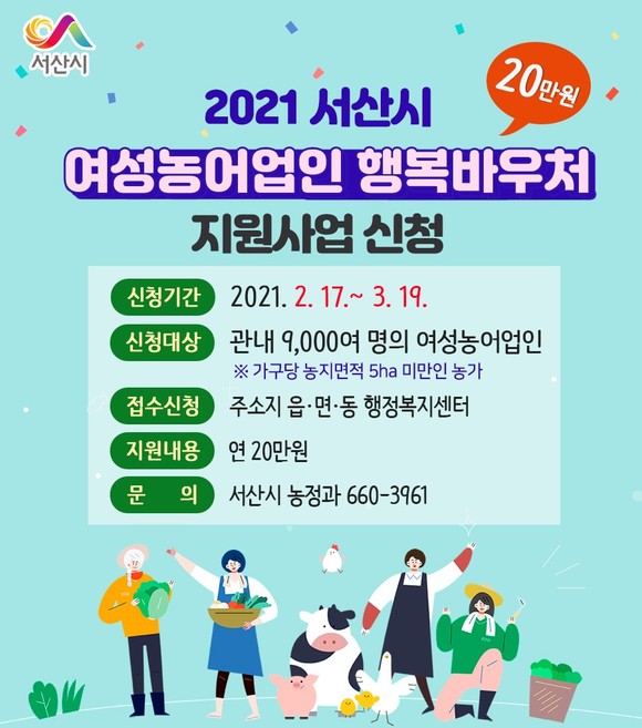 서산시, 여성농어업인 행복바우처 연 20만원 지원