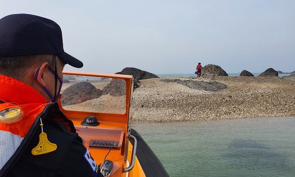 보령해경, 갯바위서 밀물에 고립된 80대 여성 구조