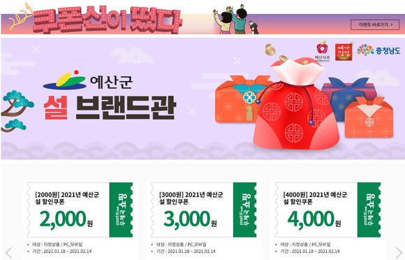 예산군, 우체국쇼핑몰서 농·특산물 설맞이 20% 할인 행사
