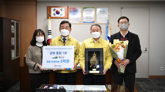 예산군, 2020년 위임사무 시군평가 우수기관 표창 수상