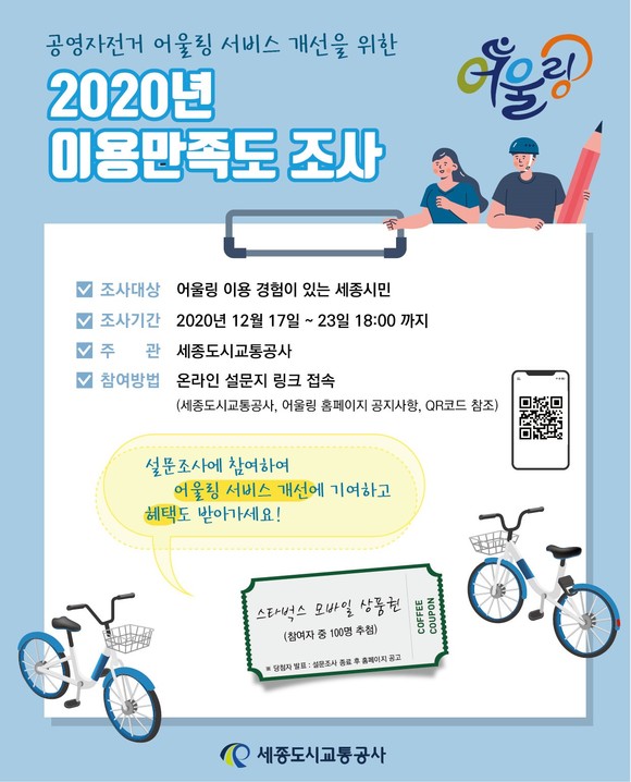 세종도시교통공사, 2020년도 공영자전거 어울링 이용만족도 조사 실시