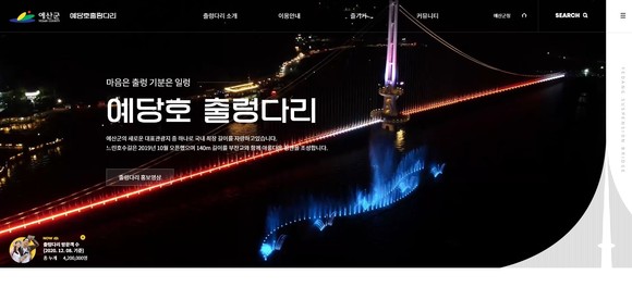 예산군, 예당호 출렁다리 및 음악분수 홈페이지 오픈