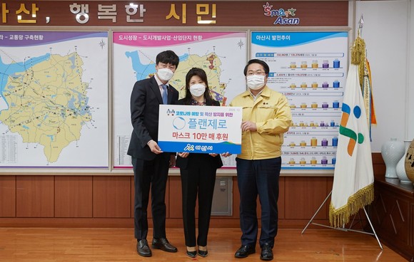 아산시-플랜제로, 코로나19 극복 마스크 10만장 후원