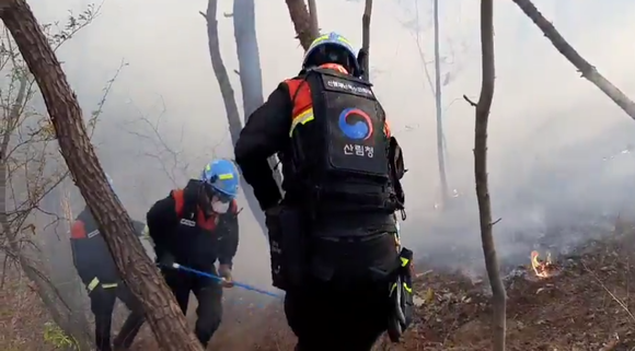 산림청, 경남 창녕군 도천면 함박산 산불 2시간 만에 큰 불길 잡혀